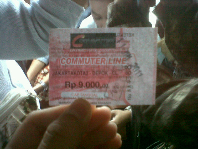 Ohhh!! Rupanya DetikCom sedang merayakan ulang tahun mereka yang ke-13 dengan membagikan karcis kereta Commuter Line tujuan Depok secara cuma-cuma. Banyak Ibu-Ibu yang pada saat itu sedang menuju Jakarta, menerima karcis tersebut dengan senang hati. Pikir mereka,”Lumayan abis belanja di Mangga Dua, pulang nggak usah beli karcis lagi.”