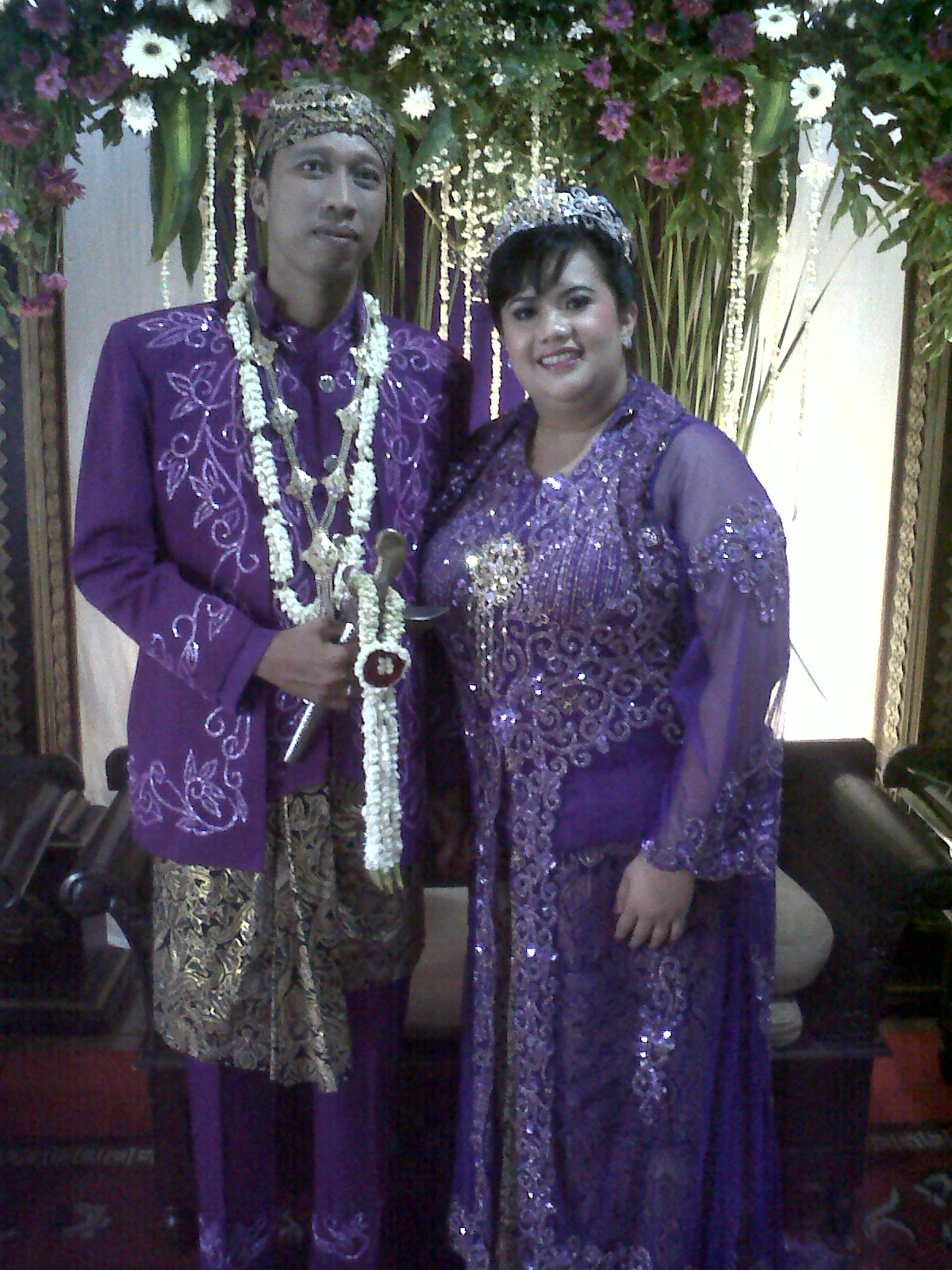 Pesta pernikahan pun ramai dihadiri para undangan. Ungu adalah warna yang saya pilih sebagai tema, secara itu warna kesukaan Justin Bieber gitu lho. Senang sekali karena teman-teman saya dari TK, SD, SMP, SMA sampai kuliah bisa datang; ditambah lagi rekan-rekan kerja, tetangga, saudara serta kerabat dan handai taulan. Cuaca pun cerah bersahabat. Pawang tokcer nih! Sayang, Mama saya sakit sepanjang pesta dan tidak bisa menemani di pelaminan. Beliau terlalu capek dan stress mengurusi acara ini. 😦