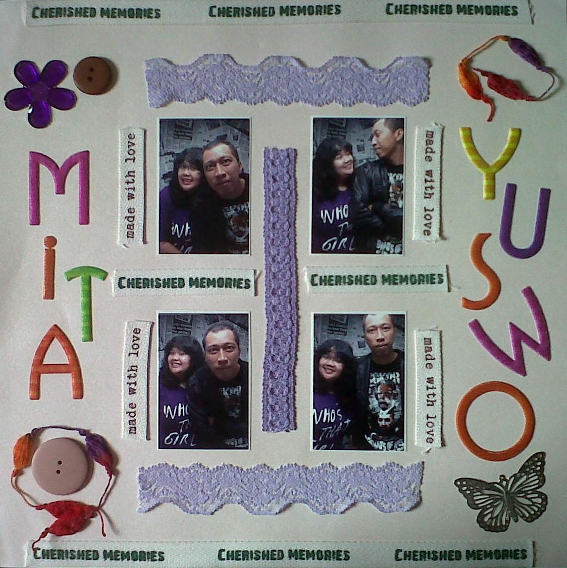 Sudah lama sekali sejak terakhir saya ber-photobox dengan pujaan hati. Beberapa hari yang lalu sewaktu kami jalan-jalan di Margo, iseng-iseng kami pun ber-photobox ria. Timbul ide membuat scrap paper dari keempat foto yang kami dapat. Mampir ke Toko Gunung Agung, saya membeli kertas karton berwarna kuning muda dan satu set pernak-pernik berupa tali, kancing dan beberapa ornamen lain. Wah, mahal juga ya kocek yang harus saya rogoh. Tapi melihat hasilnya, saya suka! Kapan-kapan mungkin saya bisa lebih memaksimalkan perintilan yang ada di rumah untuk membuat scrap paper.