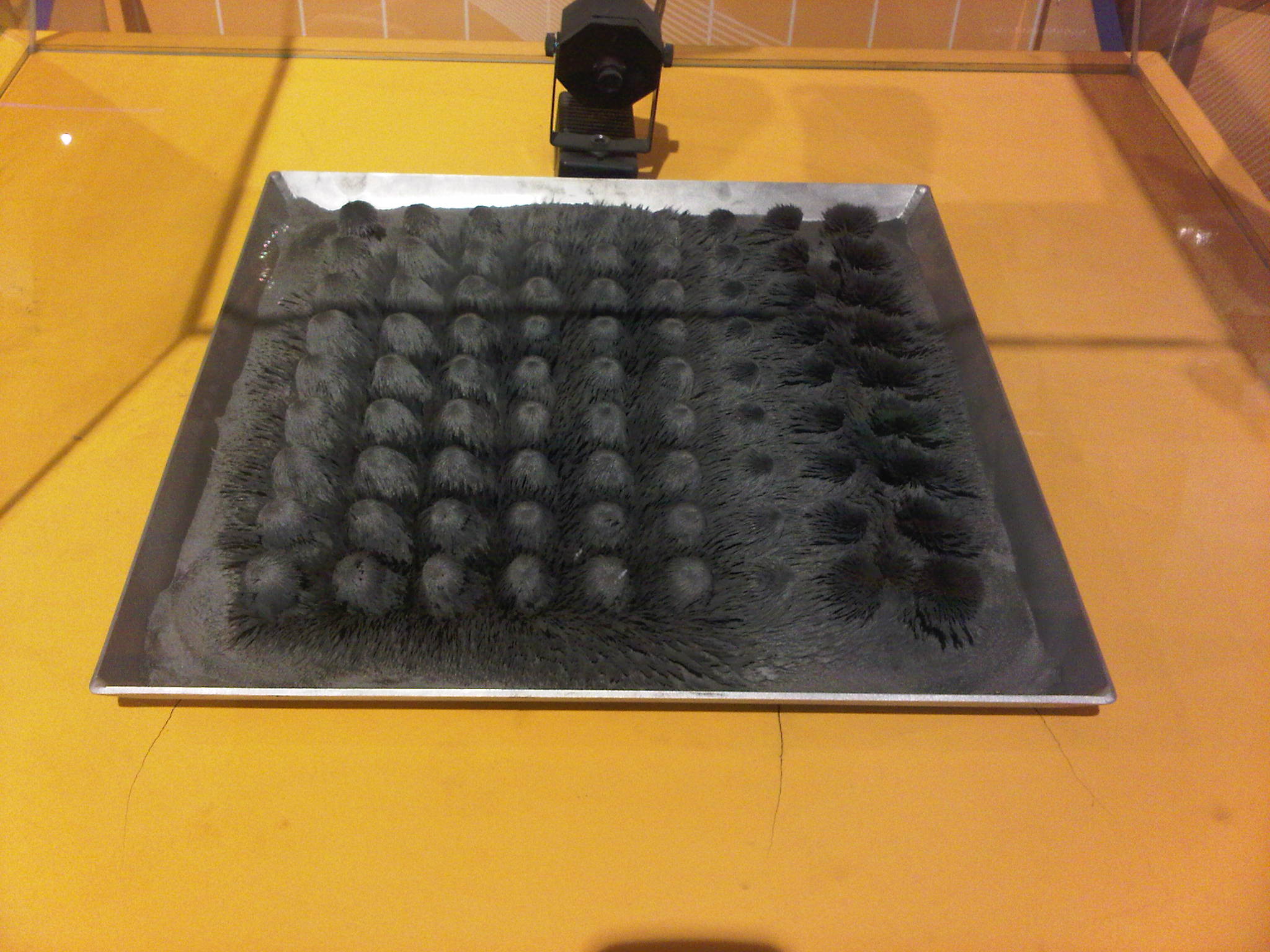 Pohon Menari. Ini adalah objek magnet yang ditaburi jutaan partikel serbuk besi yang bergerak sesuai irama musik. Butuh waktu 40 jam mengatur koreografi dengan bahasa komputer untuk menghasilkan satu menit musik yang gerakannya terpadu. Luar biasa! Harus lihat!