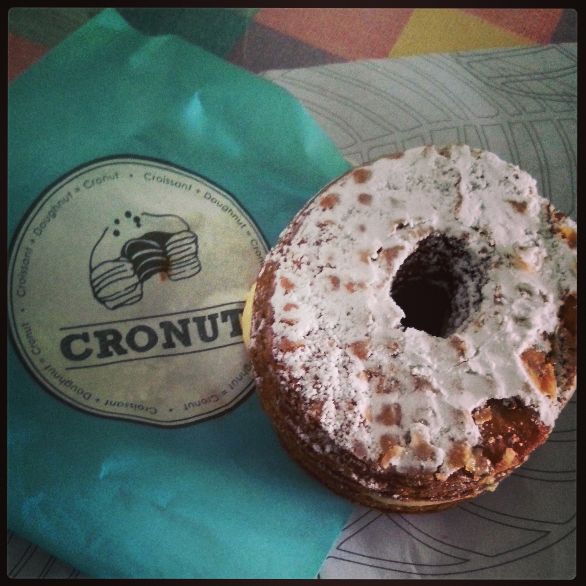 Karena pengen banget kue, ya udah deh merelakan beli di toko The Harvest Depok. Cupcake seharga 35 ribu dan Cronut Vanilla 25 ribu. Saya nggak ngarep macem-macem. Bolu cupcake-nya udah pasti biasa, mahal karena bayar dekorasi. Hehe… Tapi Cronut alias croissant donut-nya boleh banget!!