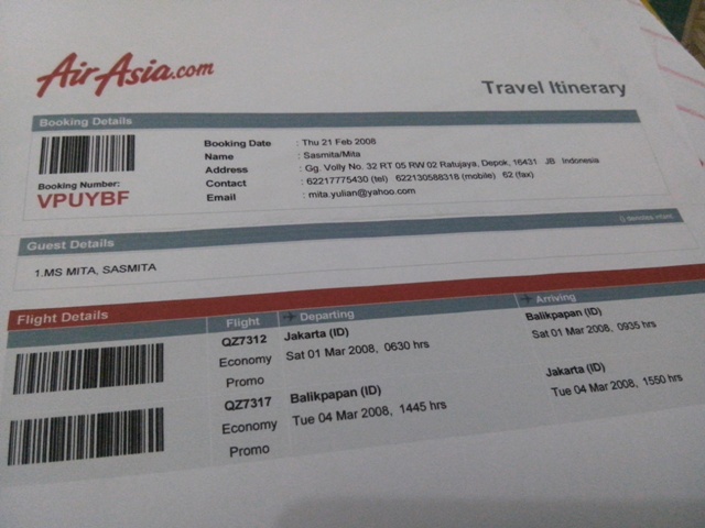 Oktober 2006 saya berkenalan dengan Yuswo lewat chatting room. Sebulan setelahnya, kami berpacaran tanpa pernah bertatap muka secara langsung; hanya bermodalkan foto, ngobrol lewat SMS dan telepon yang intens, sampai akhirnya pertengahan 2007 kami berpikir untuk berjumpa. Dipicu keinginan berlibur dengan uang sendiri, saya yang memutuskan untuk mendatangi Yuswo. Sebagai mahasiswi yang kuliah sambil bekerja, tabungan saya hanya seadanya. Sepanjang Jalan Margonda Depok saya susuri sampai akhirnya saya tiba di agen perjalanan yang menawarkan tiket pulang pergi Jakarta-Balikpapan-Jakarta seharga Rp. 752,000. Ya! AirAsia akan menerbangkan saya ke Pulau Borneo! Saya panas dingin. Ini adalah perjalanan pertama saya dengan pesawat, sendirian, bertemu lelaki yang menjadi kekasih di dunia maya.