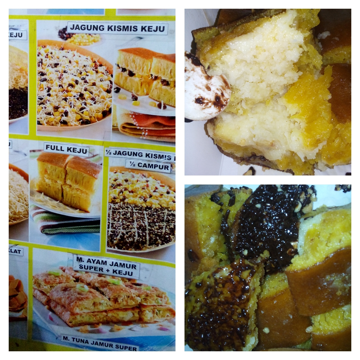 Beragam isian tersedia, dari yang klasik sampai Nutella, Ovomaltine dan Skippy. Menurut saya, roti tawar pera’ pun enak kalo pake 3 nama terakhir tadi, jadilah saya memesan isian standar; setengah keju dan setengah coklat kacang.