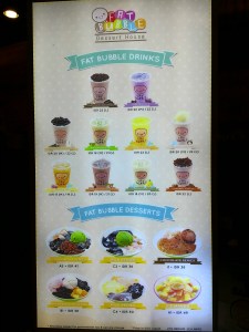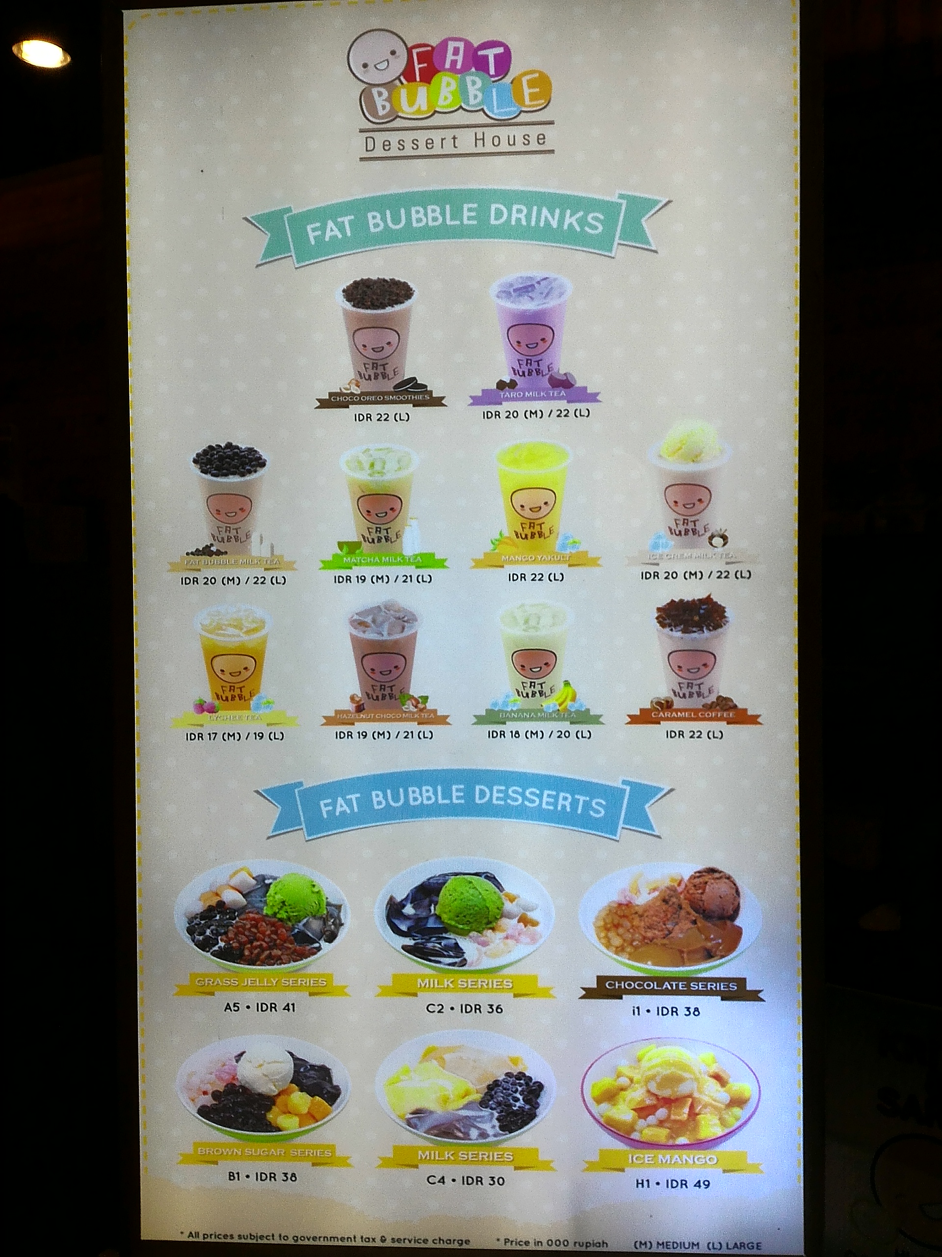 Fat Bubble menjual beragam pencuci mulut dari jenis-jenis yang kekinian macam grass jelly alias cincau, bubble alias bola-bola kenyal, es krim teh hijau dan puding aneka rasa. Saya datang dengan harapan tinggi melihat semuanya terlihat serba menarik. Khusus untuk review ini, saya minta dua porsi yang jadi favorit. Dipilihlah menu dari seri susu dan seri cincau.