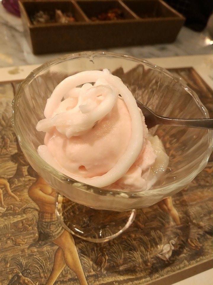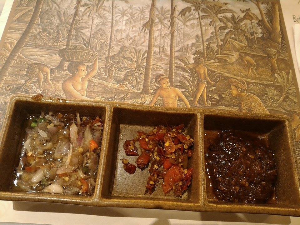 Sambil menunggu pesanan datang, saya menikmati secangkir Es Puter Sirsak, yaitu es krim kopyor yang ditabur buah sirsak dan serutan kelapa. Harusnya ini untuk pencuci mulut, tapi saya nggak sabar. Es krim ini rasanya ringan, terasa nyaman di mulut dan berpadu asik dengan buah sirsaknya yang manis. Oh iya, kami juga sudah langsung dikasih 3 macam sambal yaitu sambal bawang, sambal goreng dan sambal terasi. Kayaknya ini trik supaya kami makin lapar, karena sambalnya terlihat begitu menggoda.