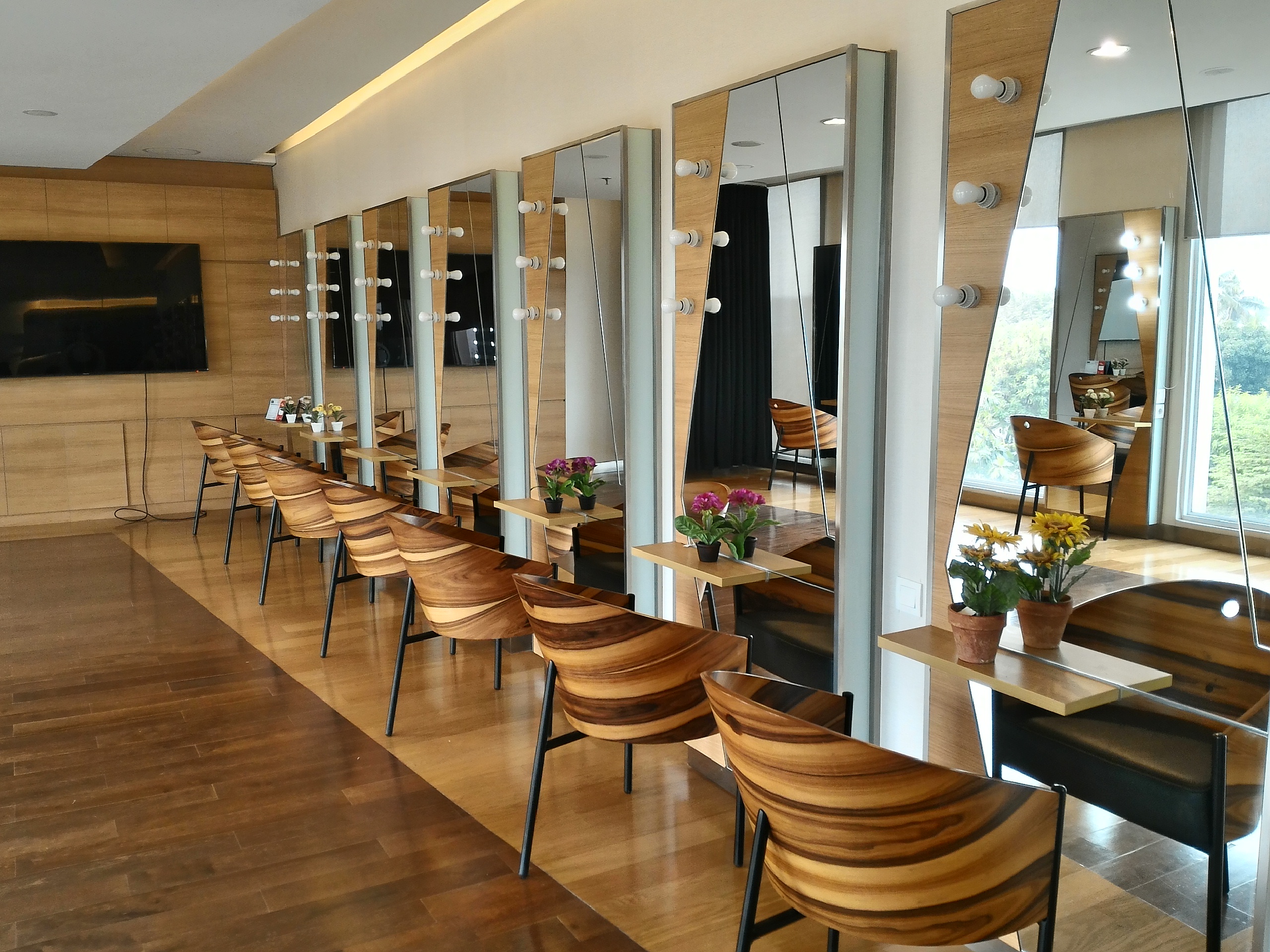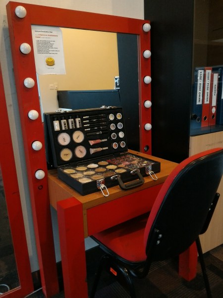 Buat yang penasaran kenapa pramugari dandanannya kece-kece, silakan tepuk tangan. Mereka ternyata dandan sendiri lho. Tanpa dibantu make-up artist. Warna lipstik pun mengikuti trend yang ada. Terdapat 2 ruang dandan: Yang besar untuk dandan heboh; yang kecil untuk touch upΒ kalo-kalo ada sedikit riasan yang luntur atau bulu mata palsu mendadak copot.