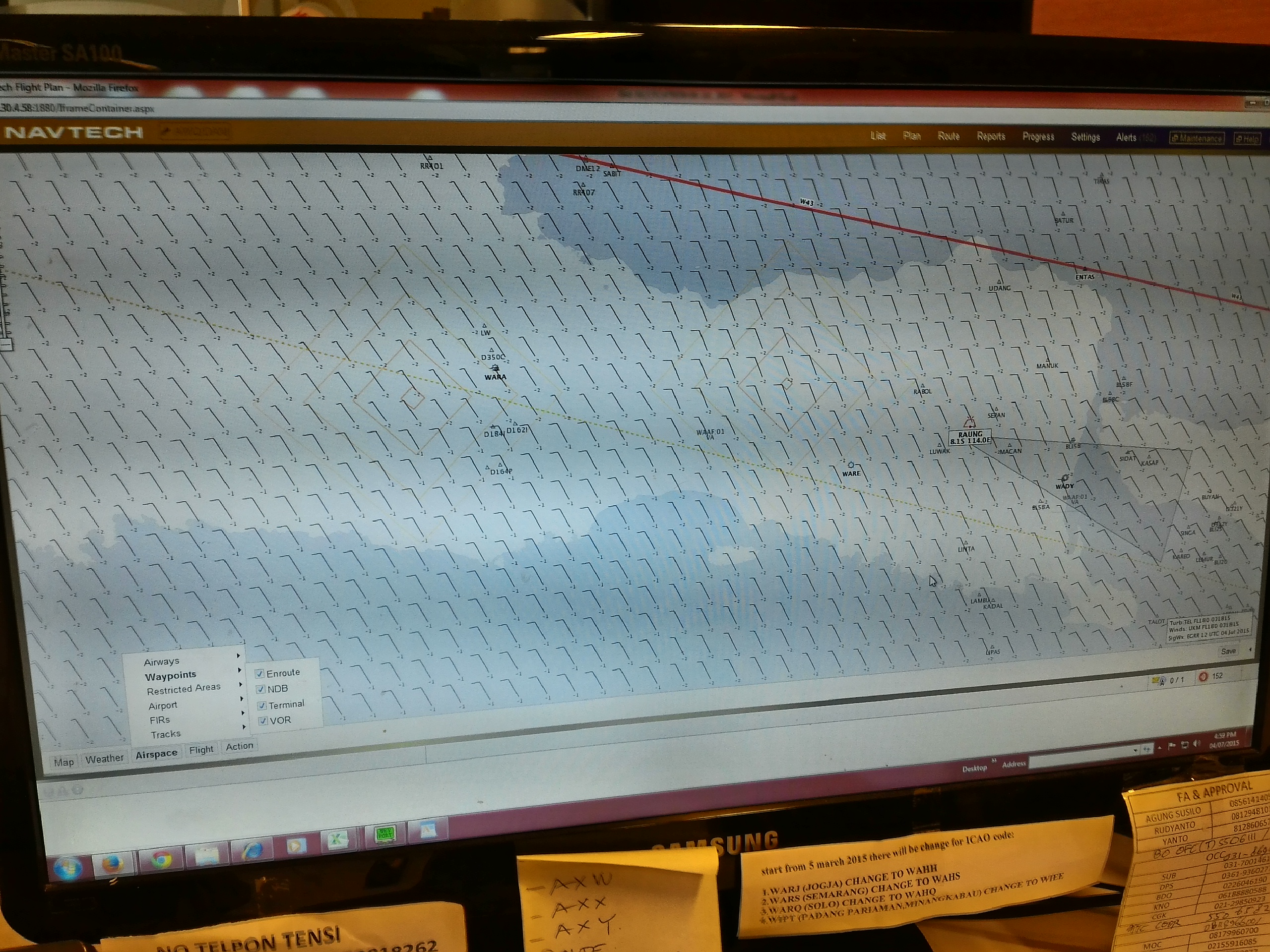 Dari Operation Control Center akan ketauan informasi seperti jadwal yang ditunda, pesawat mana yang harus didahulukan ketika lepas landas, dan juga prediksi cuaca. Seperti hari itu, ada keterangan dari BMKG bahwa Gunung Raung diduga akan mengeluarkan abu. Walaupun itu cuma sekedar ramalan, tapi sebisa mungkin Operation Control Center akan mengatur rute pesawat supaya tidak mendekati posisi abu. Pilot akan mengemudikan pesawat melewati rute yang diatur Operation Control Center. Luar biasa ya?