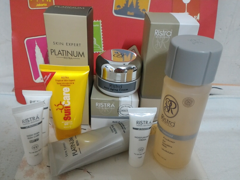 Untungnya sekarang saya udah dapetin yang cocok dan anti ribet. Bermula dari iseng, gegara mikir umur udah mau 30 tahun khawatir muka berkerut, eh ternyata cocok sama Ristra. Saya memakai produknya yang berupa: