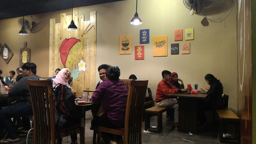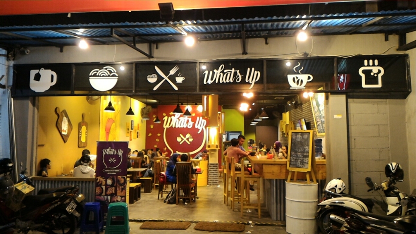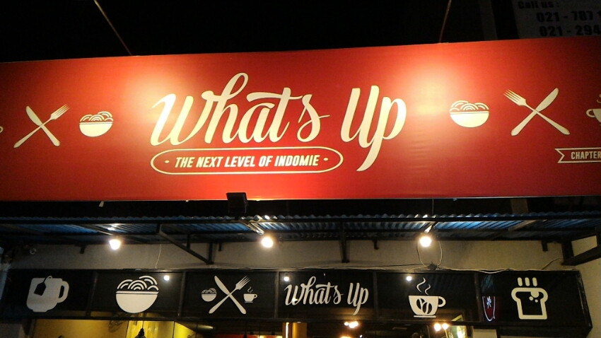 Mungkin itu asal muasal dilahirkannya What’s Up, kedai mie yang menjanjikan The Next Level of Indomie, untuk kita yang berkantong seadanya. Kedai berkonsep dasar warung kopi tapi dibikin lebih gaya dengan aksen kayu dan dinding berhiaskan gambar semangkuk besar mie dan kutipan-kutipan kekinian. Kedai kopi yang tiap mejanya tersedia UNO jadi kita bisa mempererat persahabatan lewat permainan. Kedai yang nggak cuma jual Indomie tapi juga roti bakar yang disajikan di atas talenan kayu. Kedai yang nggak sesumpek kedai roti bakar tetangga.