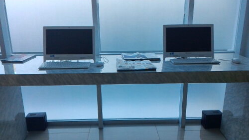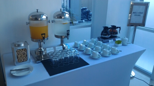 Whiz Prime Balikpapan terletak di Jalan Jendral Sudirman. Hotel bernuansa hijau ini baru aja dibuka kurang dari 5 bulan lalu. Begitu masuk ke dalam lobby, saya langsung merasa adem. Bukan hanya karena AC, tapi juga karena dinding kacanya menyerap terik matahari, sehingga ruangannya pun tidak seterang di luar. Sambil menunggu proses check-in, saya dan suami menikmati minuman dingin dan cemilan yang disediakan di pojok ruangan, seraya duduk santai di sofa.