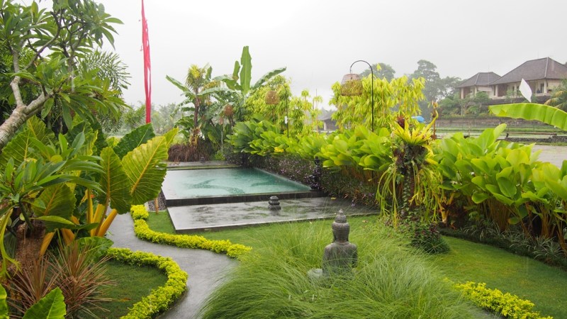Hujan rintik-rintik menyambut kedatangan saya dan Dini di Ubud. Tergopoh-gopoh kami melewati sungai dan gang kecil, menepis butiran air yang turun dari langit. Di depan, koper kami ditenteng oleh seorang Bli dari penginapan yang kami pesan dua bulan lalu. Deras… Dan ketika langkah kami berhenti di pelataran The Moksha, hujan turun makin deras.