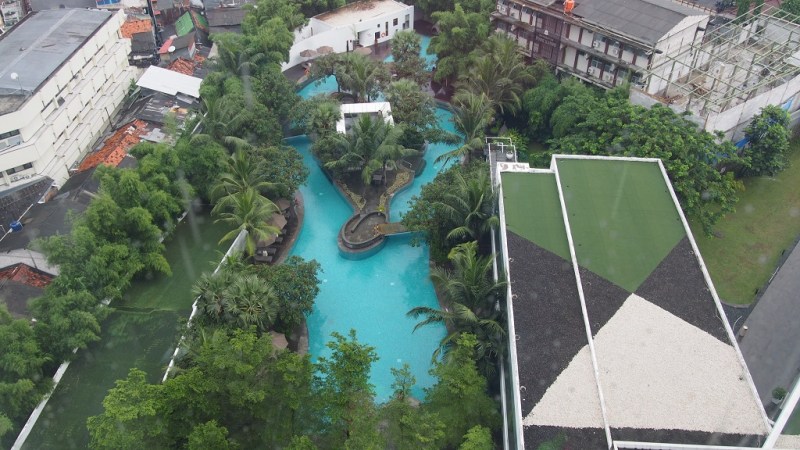 Peralatan mandi lengkap. Lantai berkarpet. Ketel listrik dan minuman seduh tersedia. TV 42-inch terbingkai dalam aksen modern, dan bahkan ada Al Qur’an dan Alkitab untuk jiwa-jiwa yang haus siraman Illahi. Cucok banget lah untuk staycation, dijamin males keluar kamar kecuali untuk makan dan berenang (kolam renangnya juga menggoda untuk diceburi).