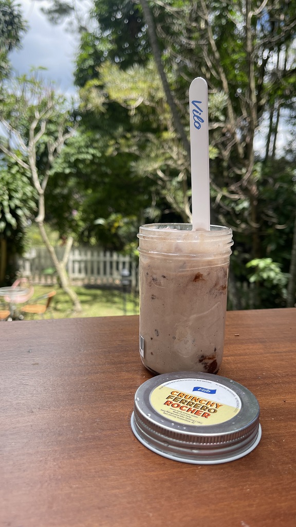 Kelar makan, perut udah nggak bunyi, saya memutuskan untuk cari pencuci mulut. Tujuan berikutnya adalah Vilo Gelato Bandung. Uhhh tempatnya keceee! Dari luar keliatan kayak depan rumah biasa aja, pas masuk donggg, nggak mungkin deh nggak pengen foto-foto cakep. Untuk gelatonya sendiri ada banyak banget rasa; saya memilih Crunchy Ferrero Rocher. Bandung lagi mendung kala itu, saya makan buru-buru biar nggak kehujanan. Jadi kurang menikmati. Haha.