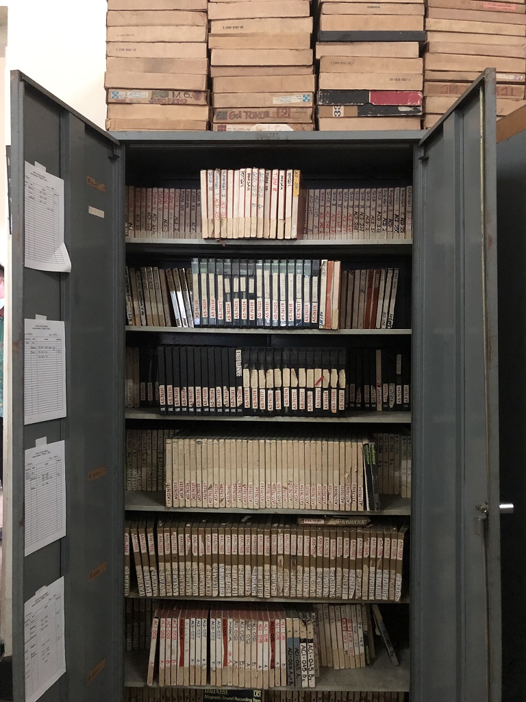 Di Ruang Produksi, pemandu saya Mas Anggit berkisah kalau Lokananta stop memproduksi piringan hitam di tahun 1972. Mereka lalu beralih ke produksi pita kaset sampai sekarang, dan CD juga. Keren banget lho, Lokananta sempat memproduksi untuk Pandai Besi, Mocca, Gigi, hingga Slank. Nggak cuma band besar, band-band indie juga ikut memproduksi rilisan mereka di Lokananta. Bahkan, Lokananta juga sempat merilis banyak pemusik, namun sudah tidak lagi sejak awal tahun 2000-an.