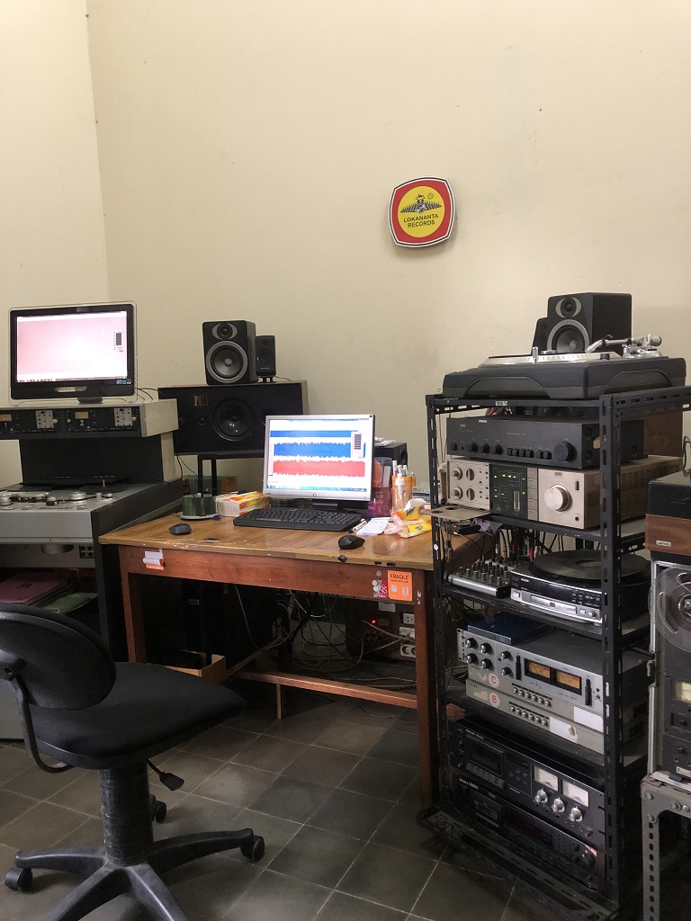 Memasuki Ruang Rekaman, saya dibikin tercengang! Ukurannya se-lapangan futsal! Jadi bisa dibilang, Lokananta merupakan studio rekaman terbesar se-Indonesia. Kenapa bisa gede banget? Soalnya dulu dipake untuk rekaman gamelan dan keroncong. Alat musiknya kan gede juga. Peresmian Lokananta sebagai studio rekaman adalah di tahun kelahiran saya, yaitu 1985. Pak Harmoko yang meresmikan. Hingga kini, Lokananta masih bisa dipakai untuk rekaman, tapi bawa perangkat rekaman sendiri ya. Kayak Slank tuh, tahun 2019 mereka rekaman full album di Lokananta. Satu truk peralatan rekam mereka bawa untuk rekaman selama 5 hari.