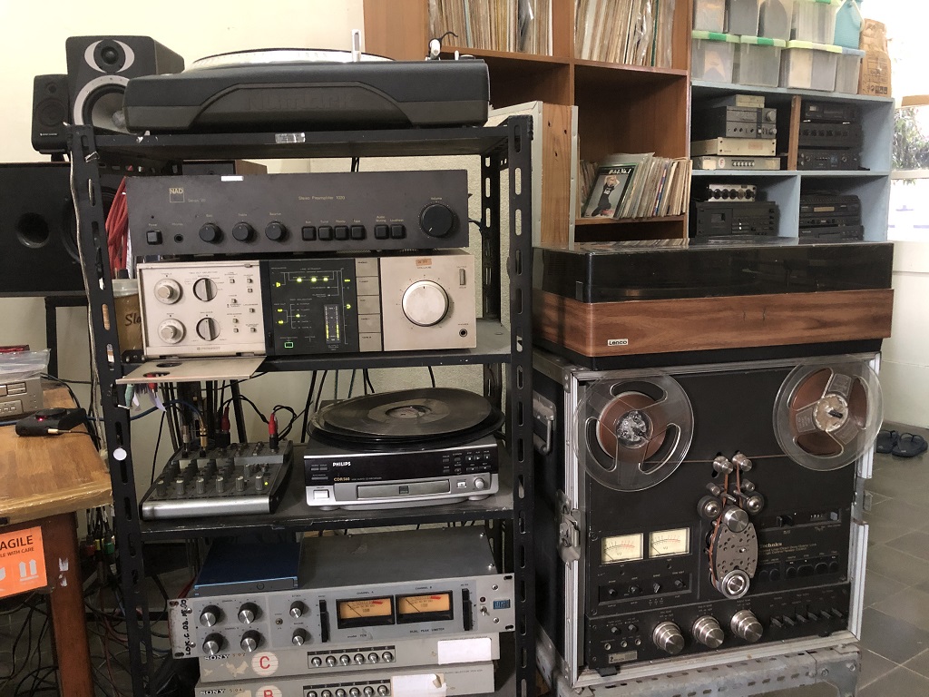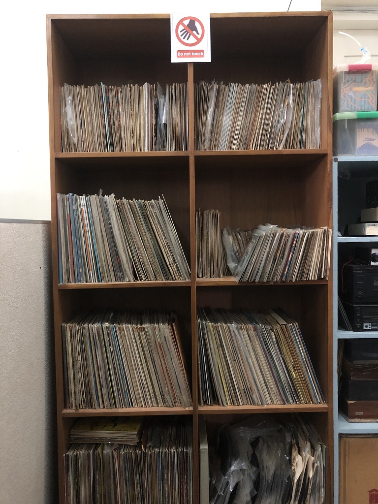 Ruang pertama yang saya masuki adalah Ruang Master. Saya melihat lemari-lemari besi berisi master piringan hitam yang usianya sudah tua. Bayangin aja gais, dari 1957! Stasiun TV dan radio kalo mau cari lagu-lagu daerah, koleksi terlengkapnya ya ada di Museum Lokananta. Kalo gak salah catat, ada sekitar 5,600-an master files dan 53,000 keping piringan hitam tersimpan di Lokananta. Saya sempat mendengar rekaman suara Presiden Soekarno berpidato di Surabaya tahun 1959, mengenai kedatangan Perdana Menteri Uni Soviet, Nikita Khrushchev. Merinding. Suara beliau memang magis. Oh iya, master files di Museum Lokananta tentu sekarang sudah didigitalisasi, jadi saya mendengarnya lewat komputer. Melewati puluhan tahun, tidak semua piringan hitam bisa dipasang terus-terusan.
