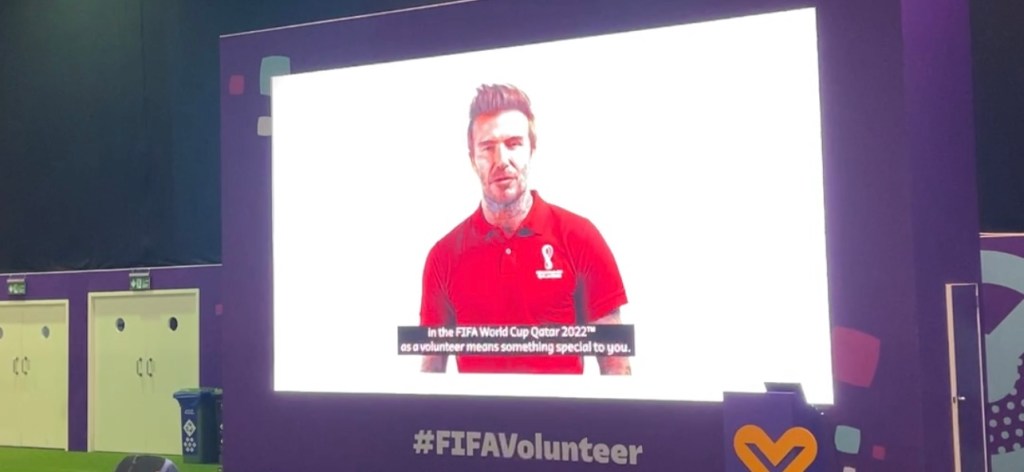 Setiba di DEC, terlebih dahulu kami menghadiri semacam acara selamat datang. Ada perwakilan FIFA yang menyambut kami dan sedikit memberikan presentasi tentang kegiatan relawan dan juga kehidupan di Qatar. Ada David Beckham juga, meski cuma rekaman video doang sih. Haha. Baru deh setelahnya kami diajak ke ruangan lain untuk antri ambil akreditasi dan seragam. Meski hari itu yang datang banyak banget, tapi proses pengambilan berjalan cukup lancar dan cepat.